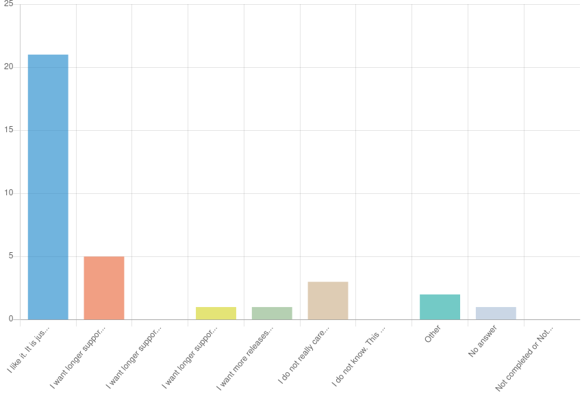 We take it as a sign that the LTS/feature support model works well, both kinds of releases have their place and purpose.