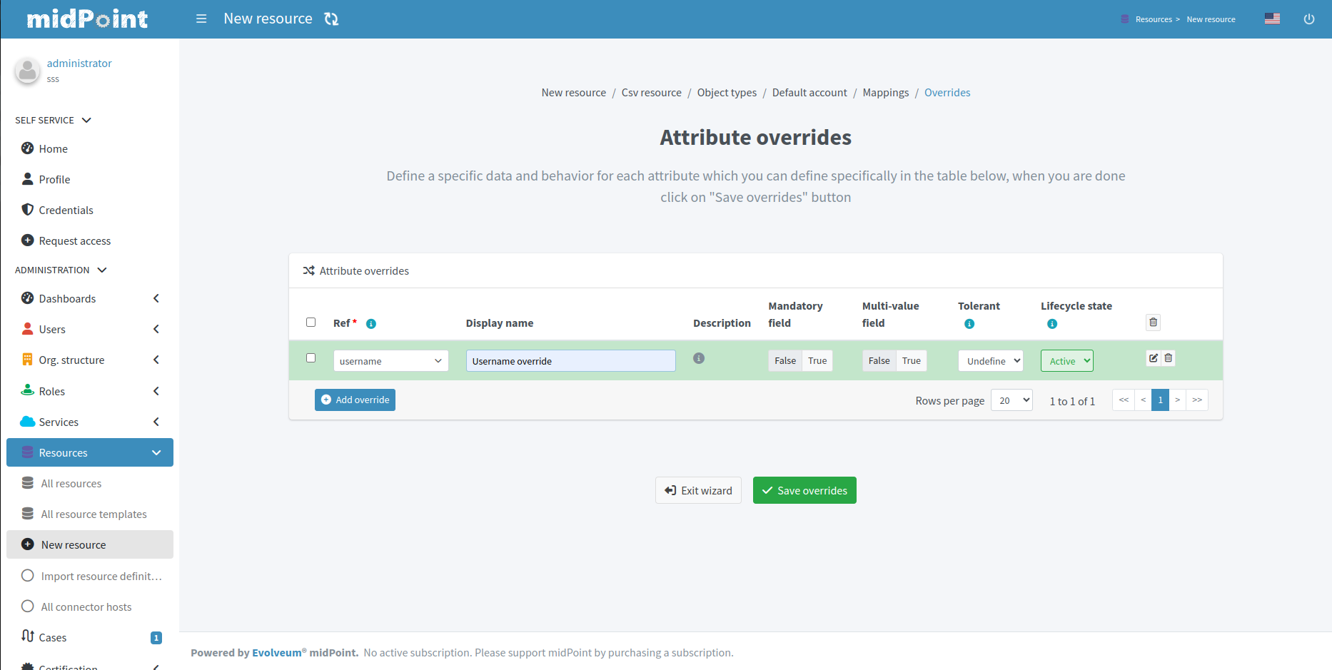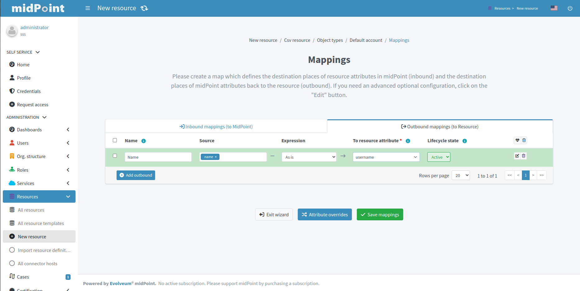 Configuration for credentials contains similar panels as for activation, but contains only one kind of mapping and doesn’t contain any predefined mappings.