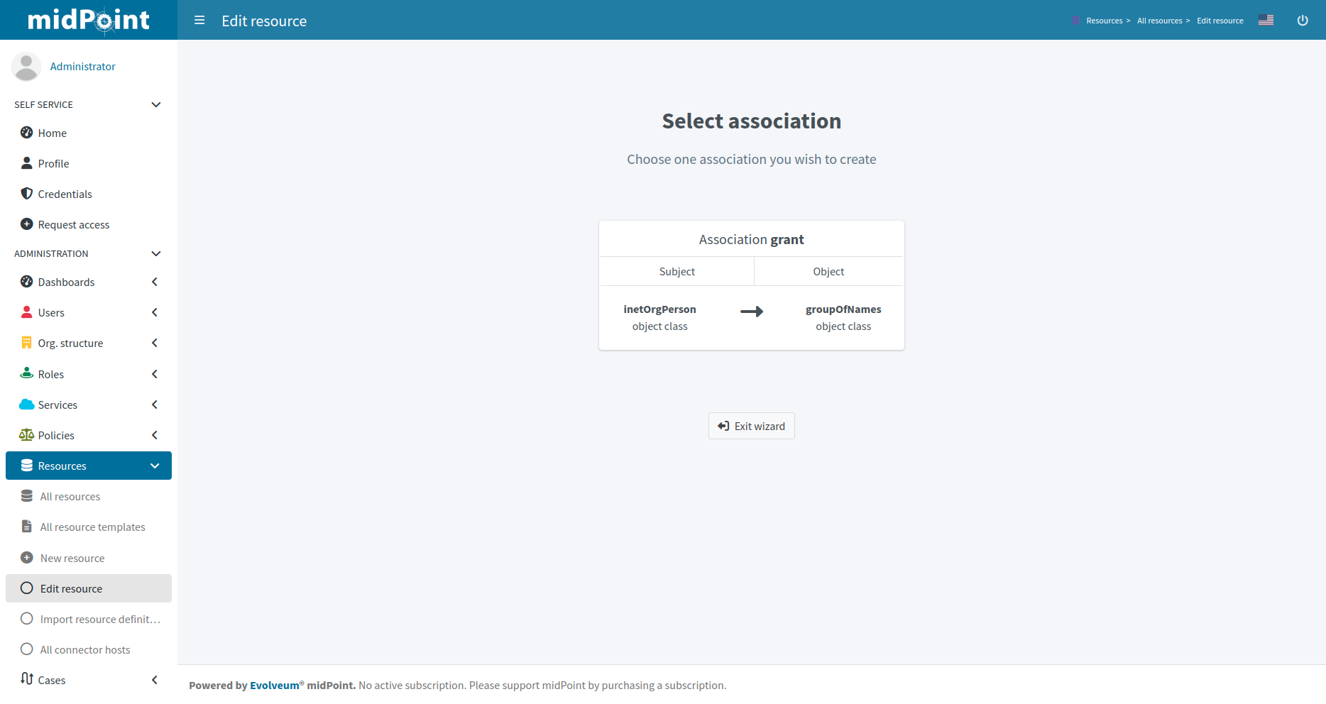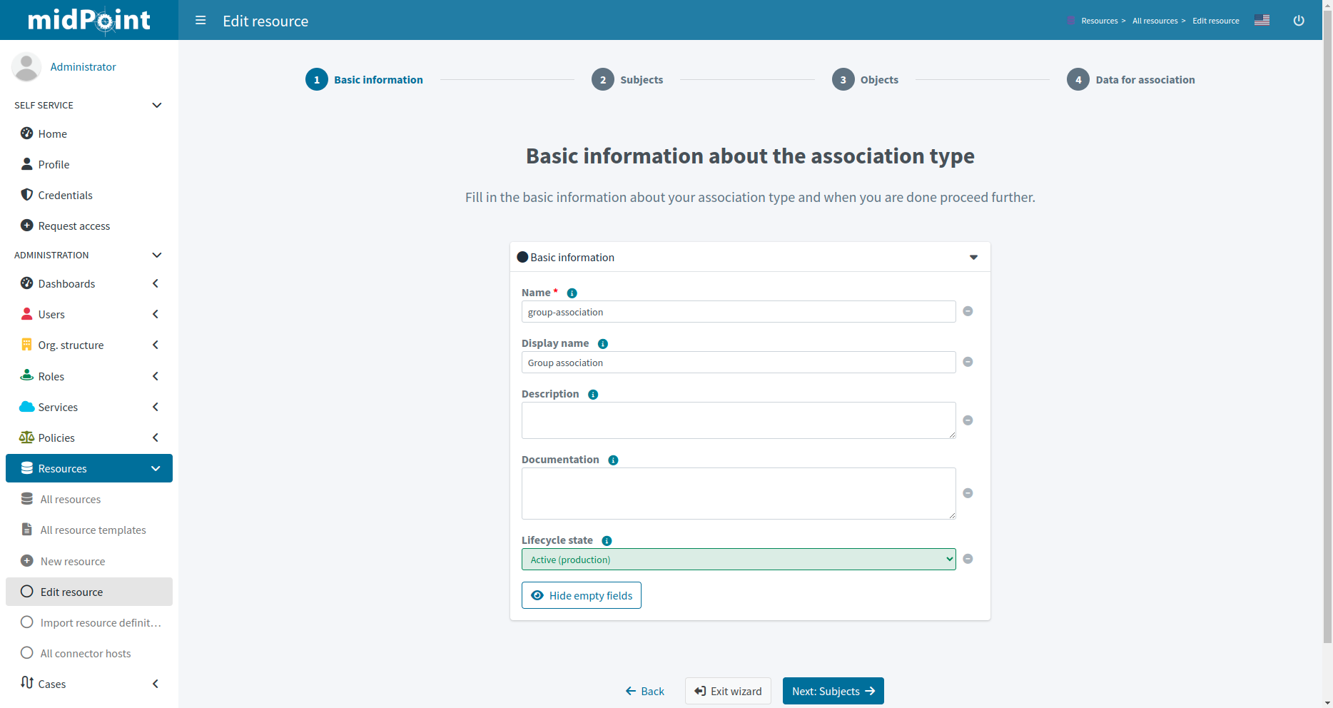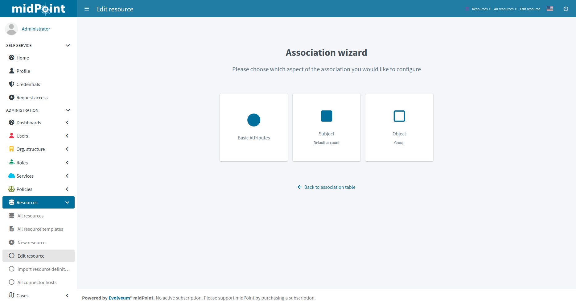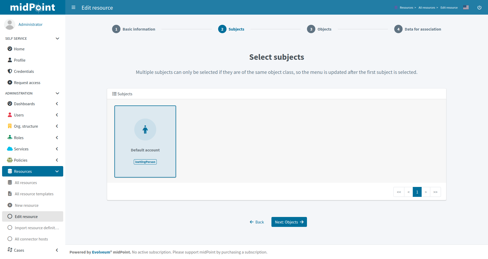 Click btn:[Next: Subjects] to continue in the association type definition wizard.