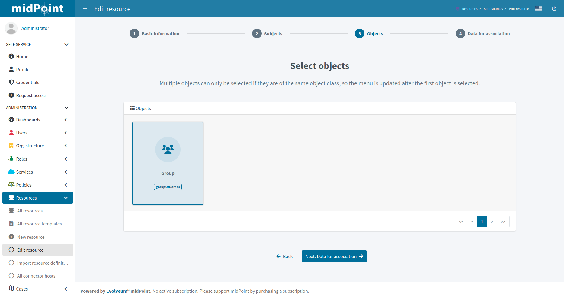 The next step is very similar to the previous one, but you select the object (as the object type of the resource) of association.
