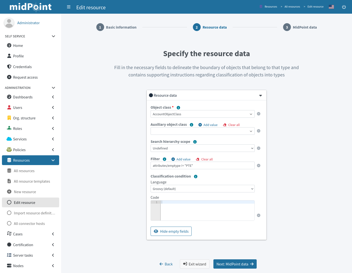 MidPoint resource wizard can’t show or edit these features but tolerates them and keeps them untouched if you configure them in XML.