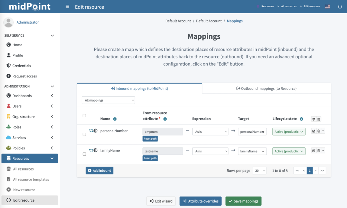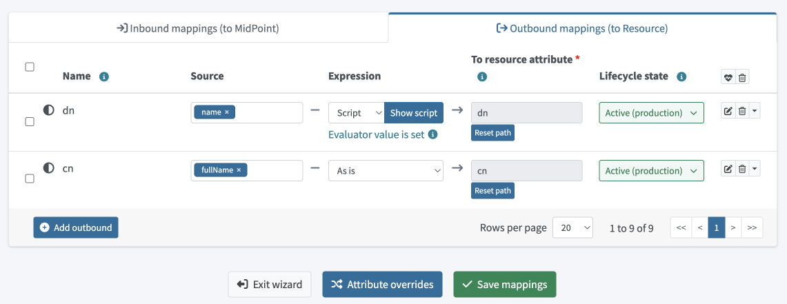 Outbound mappings: Control the transfer of data from midPoint objects to target systems.