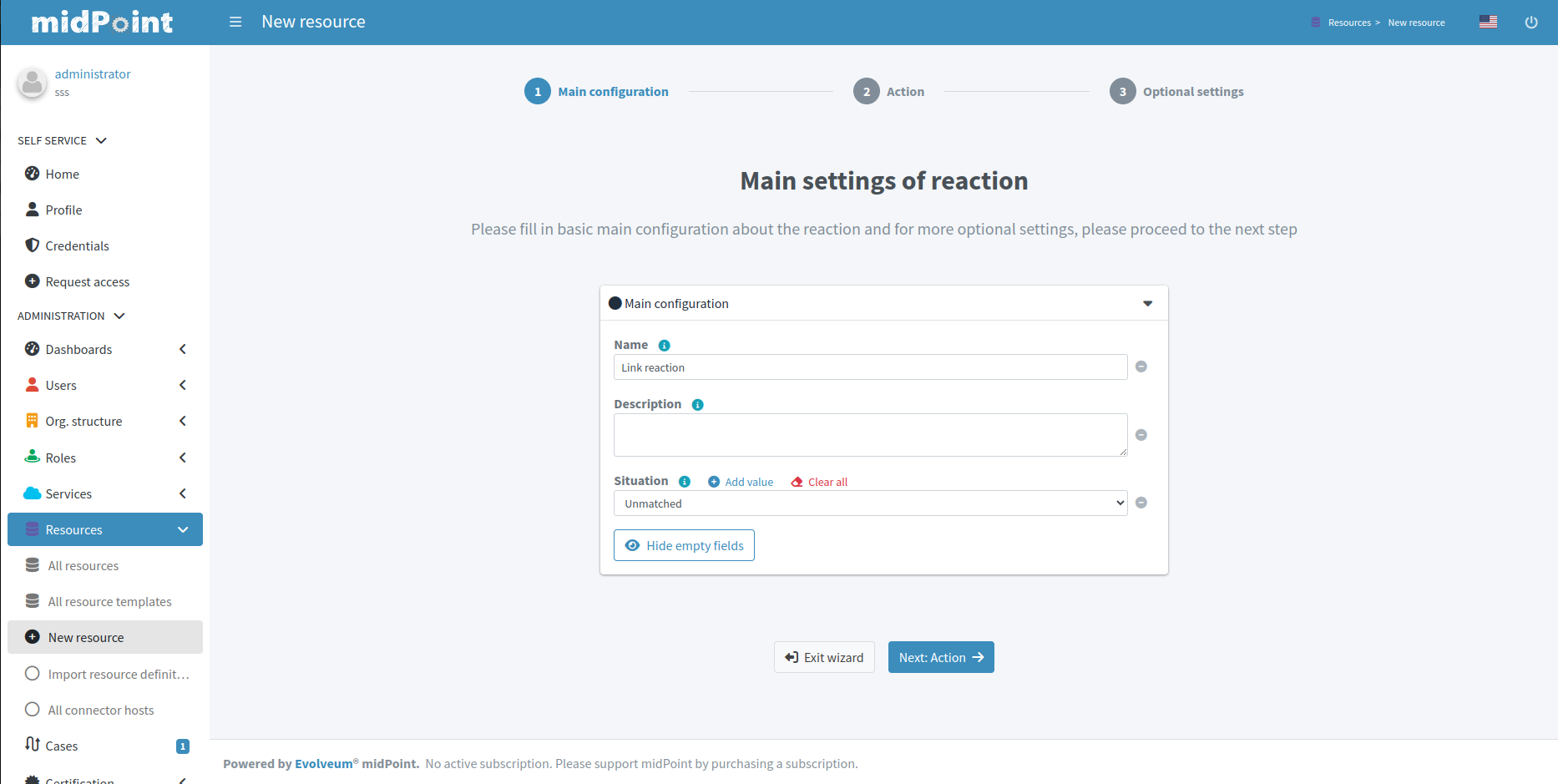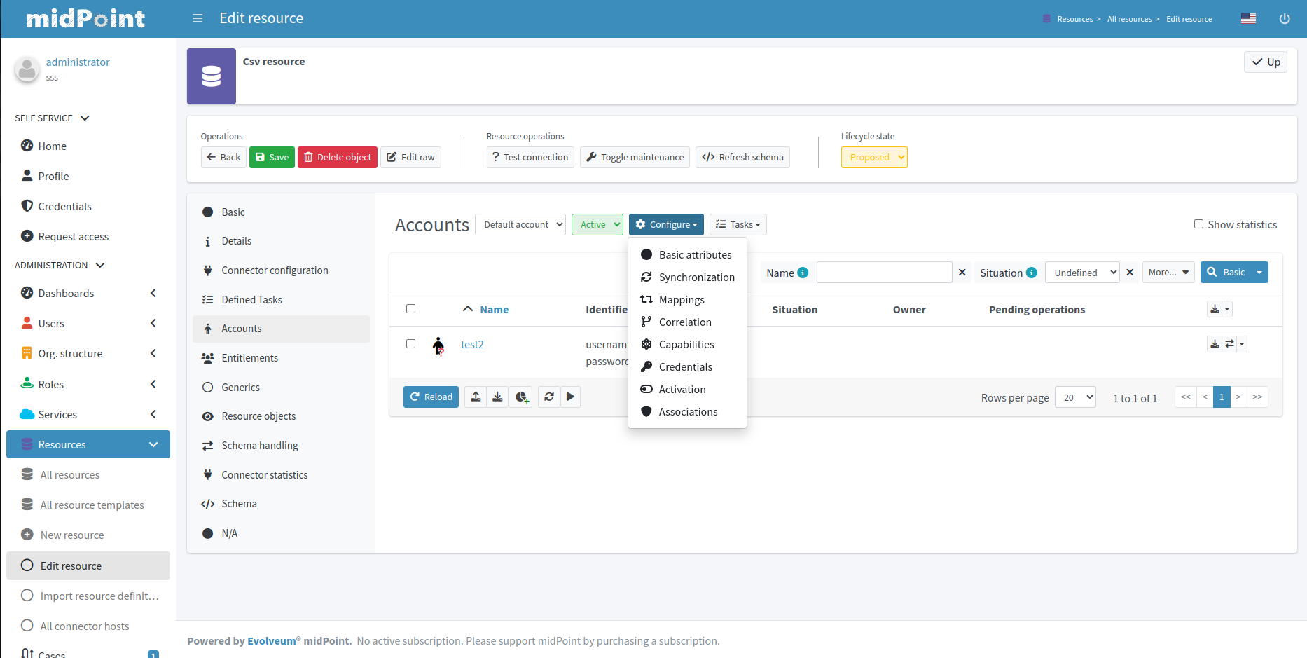 Click Create resource to create the resource and store it in midPoint repository. Further configuration is required. You can choose your next step: