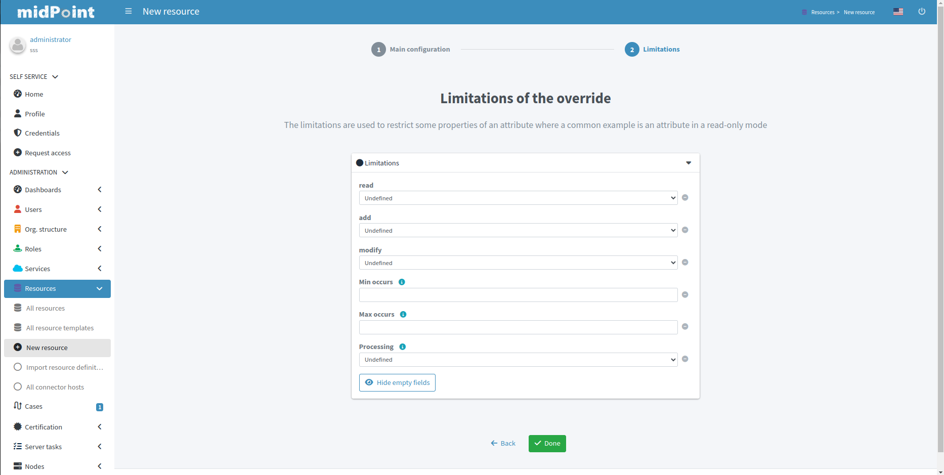 Resource wizard has several limitations as of midPoint 4.8, such as: