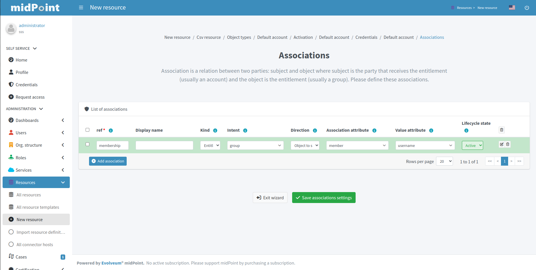Associations allow you to configure resource for object type relations. Typically, this is used to configure how account/group membership is defined and processed.