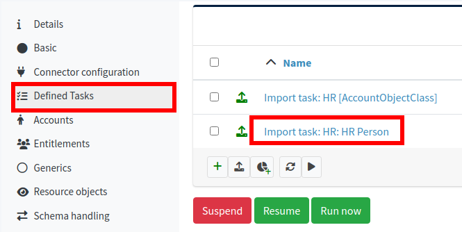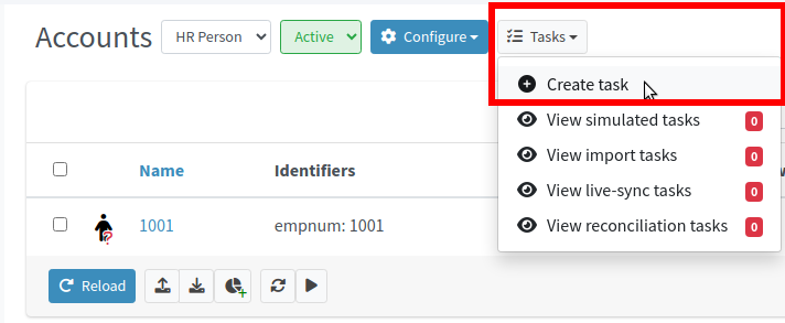 Import task: HR System: HR Person. In the following image we are using a custom task nameReconciliation with AD - development simulation.