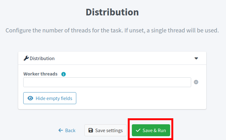 Click Save & Run to save and start task immediately or click Save settings to create but not start the task.
